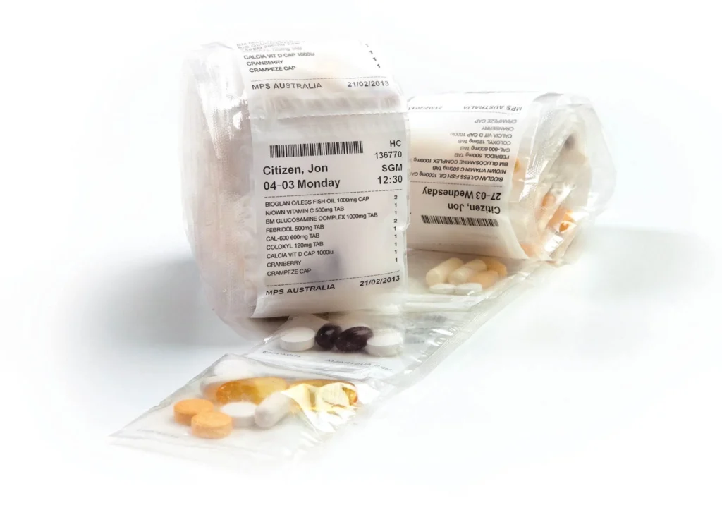 Sachet rolls: Your medication is organised and packed according to the time and day you take it. Each personalised sachet is clearly labelled with your name, the medicine and the time and day it is to be taken. These are great if you want to take some pills away with you without taking ALL your medication with you.